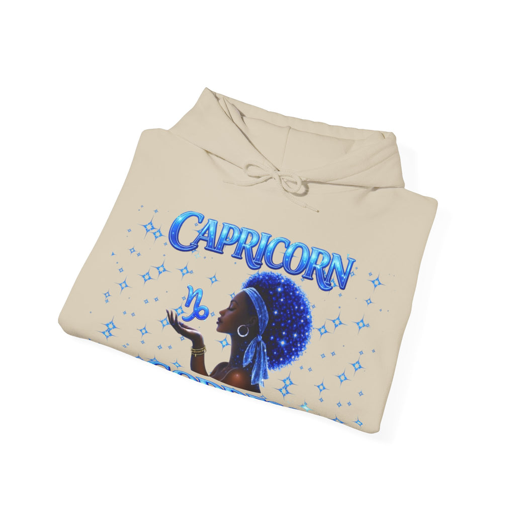 The Capricorn: Celestial Queen Energy Hoodie celebrates Capricorn women who move with quiet confidence and unstoppable ambition. Featuring a striking image of a Black woman with a radiant afro, this design blends celestial elements with Capricorn strength—honoring resilience, wisdom, and leadership written in the stars.