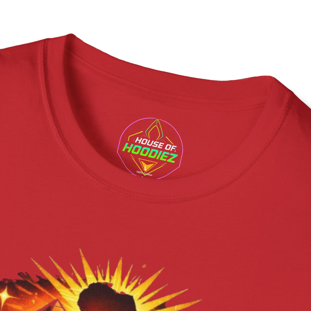 A soft, breathable tee that carries bold, colorful artwork with a confident, playful energy. Lightweight ring-spun cotton feels smooth against the skin while the classic crew cut and clean silhouette keep the focus on the vibrant graphic. Thoughtful details — a ribbed collar that keeps its shape, shoulder tape to prevent stretching, and a tear-away label — make this shirt comfortable for all-day wear. It’s printed using direct-to-garment and Direct-to-Film methods for crisp color and durable sleeve accents. Ethically sourced cotton and Oeko-Tex certification mean you can wear it with reassurance about quality and safety.