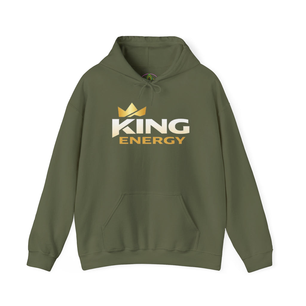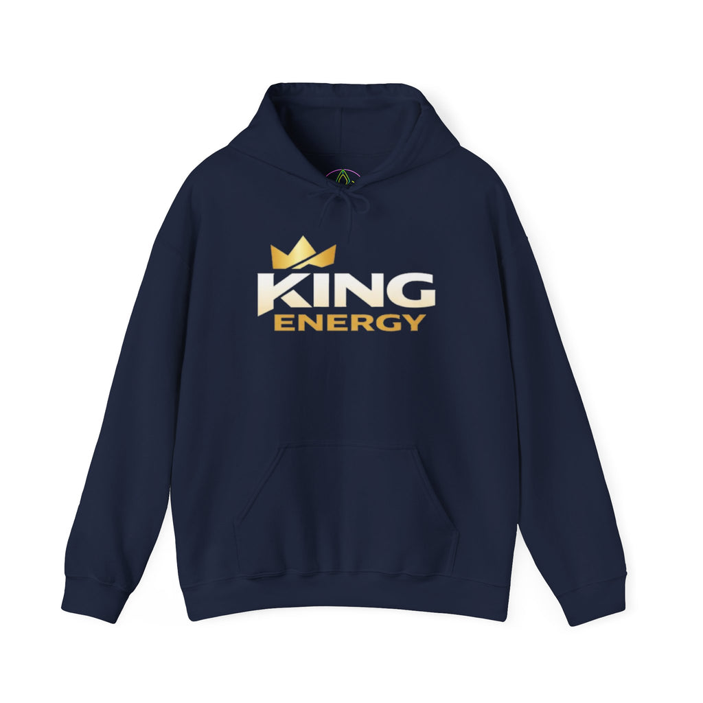 A soft, substantial hoodie that reads like confidence. The bold KING ENERGY logo sits across the chest in gold and white, crowned with a simple emblem that catches the light and attention. The double-lined hood and color-matched drawcord give a finished look, while the roomy kangaroo pocket and medium-heavy fabric wrap you in cozy warmth. Made from a durable cotton/poly blend that holds prints and embroidery crisp, this hoodie wears well on busy days, chilly rehearsals, late-night drives, and every moment you want to feel empowered and grounded.