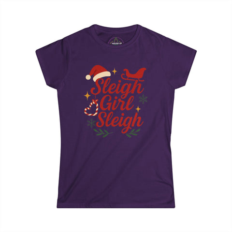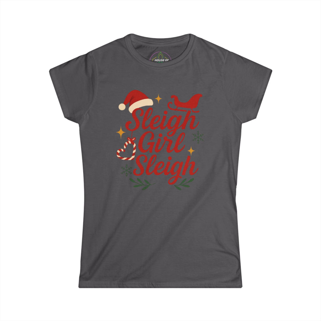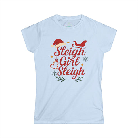 This softstyle tee brings playful holiday spirit to everyday wear. The cheerful “Sleigh Girl Sleigh” lettering is accented with a Santa hat, sleigh silhouette and delicate snowflakes, creating a lighthearted festive look that feels warm and fun. The semi-fitted cut and lightweight fabric let you layer it under sweaters or wear it on its own during cookie-baking marathons, tree-decorating afternoons, or casual winter gatherings. Breathable ringspun cotton and a tear-away label keep comfort front and center so you can move, laugh, and celebrate without fuss. Subtle reinforced stitching and side seams give the shirt a clean shape that lasts through seasons of wear.